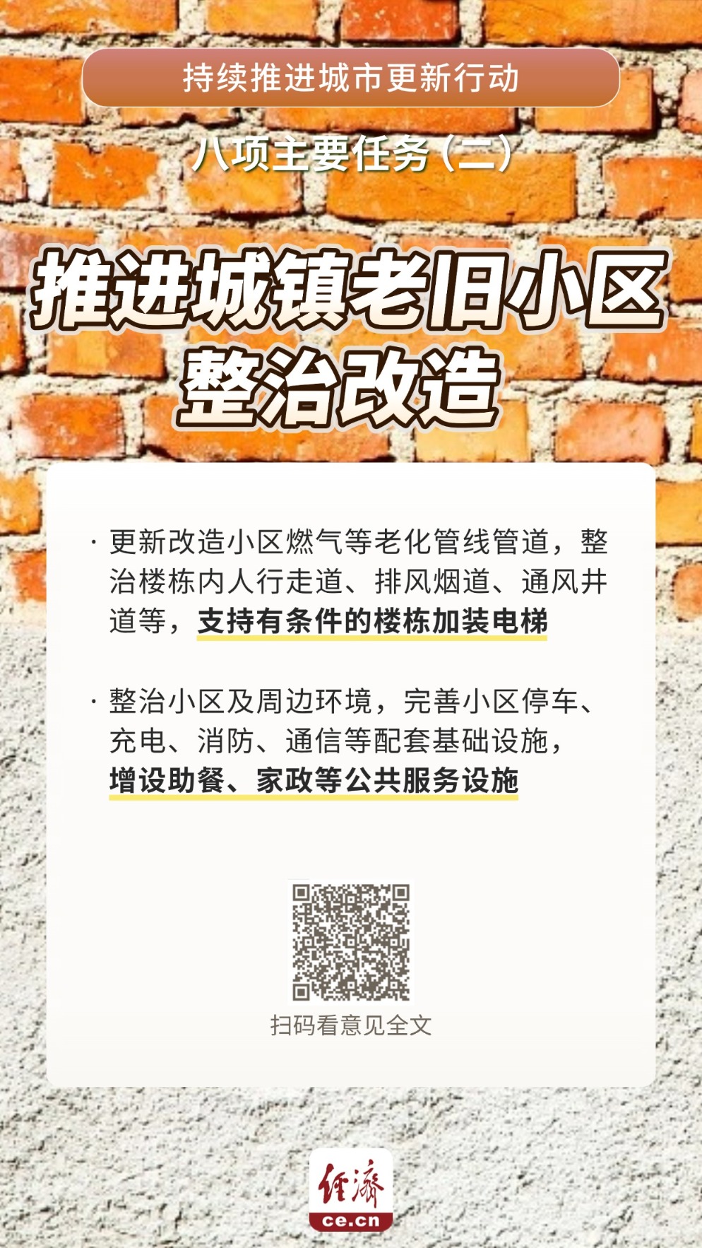 中共中央办公厅、国务院办公厅近日印发《关于持续推进城市更新行动的意见》,要求建设好房子、好小区、好社区、好城区,目标到2030年城市更新行动实施取得重要进展。围绕人民关切,意见部署了八项主要任务,一组图带你速览要点↓